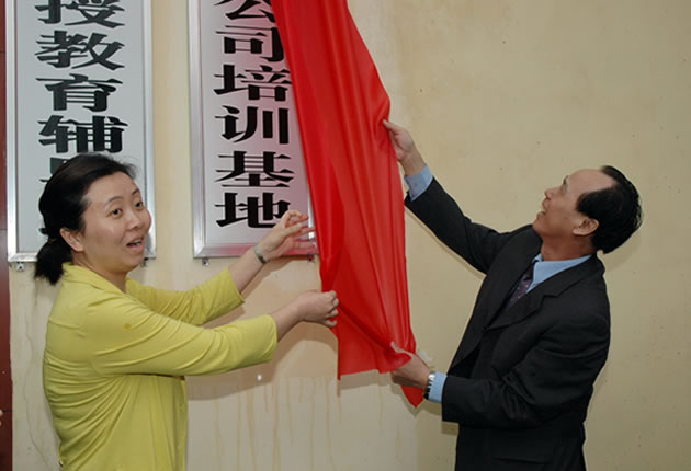 刘波校长(右)与许瑞副总经理共同为培训基地揭牌