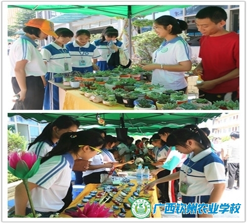(四)科普单位积极参与,场面恢宏,形式新颖。今年的科普活动分五个主题:一是科普知识展示,钦州市科协、市气象局、市地震局、钦南区科技局和钦北区科技局、钦州坭兴陶艺有限公司、广西烟霞山景区等单位和企业到学校布置展位,展示科普知识,涉及气象、防震减灾、坭兴陶艺、宜居乡村、烟霞山地貌等科普知识;二是全国科普教育基地主题活动,有现代农业示范园、智慧农业、新气象站、园林展示园、花卉盆景展示园、向日葵展示园、昆虫馆的开放;三是学生技能竞赛,涵盖了学校17个专业共37个项目,每个项目前都人头攒动,人们啧啧称奇,成为校园活动的最大亮点;四是社团展演,展演项目有音乐、舞蹈、吉它弹奏、武术、轮滑、曳舞,吹拉弹唱,成为当天吸眼球、聚人气的地方;五是社团经济“一条街”活动,在这里,学生已变成了“商人”,他们向顾客推销农场和大棚生产的农产品、同学自己制作的花环、彩绘、丝网花、小盆景和糖水,电商和微商在这里得到体验,据悉,销售“业绩”不错,一些品种脱销。“一条街”成为了今年 校园科普活动又一创新之举。当天,整个钦州农校好像一座巨大棋盘,排兵布阵,有条不紊,招招奇妙,在大操场、在主校道、在灯光球场、在大礼堂、在实训室、在大棚里、在树荫太阳伞下……到处是活动项目,到处是川流不息的人群,场面恢宏、震撼。