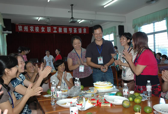 茶话会由妇委会主任黄小海主持,刘波校长、覃一静副校长、吴炳科副校长、工会陆武昌主席、团委杨宁远书记参加了茶话会。