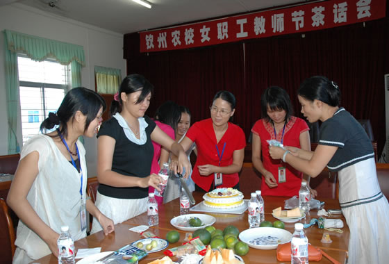 此次茶话会,妇委会精心策划以集体过生日的别致方式进行,到会的校领导分别为女职工分发蛋糕和派送纪念小礼品,整个茶话会,充满着温馨、关爱、宽松、热烈、快乐的节日庆贺气氛。