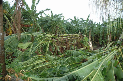 受损的实习农场的菜地和瓜田实习农场的香蕉树成片被吹倒校道旁的大王椰树枝被生生剥下实习花木场的花盆被风刮倒学校基地的绿化树被连根拔起基地猪舍石棉瓦被掀翻台风过后校道芒果树下一片狼藉