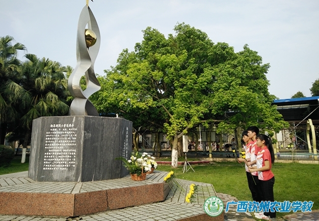 杨其新系钦州市钦北区小董镇那陵村公所屯陵村人,1975年10月出生,1992年9月考入钦州农校就读多种经营专业921班,1994年7月23日暑假返家途中,在小董镇饼岭江奋不顾身抢救落水客车乘客,光荣牺牲。杨其新牺牲后,1994年8月18日,共青团广西区委追认其为“全区优秀共青团员”;1995年9月26日,国家民政部授予其为“革命烈士”。中共钦州市委、政府和广西区农业厅分别先后做出了“向杨其新烈士学习”的决定。我校将杨其新烈士列为学校的永久性德育教育榜样,并在学校馨园建立杨其新烈士纪念雕塑,激励一代代钦农人。