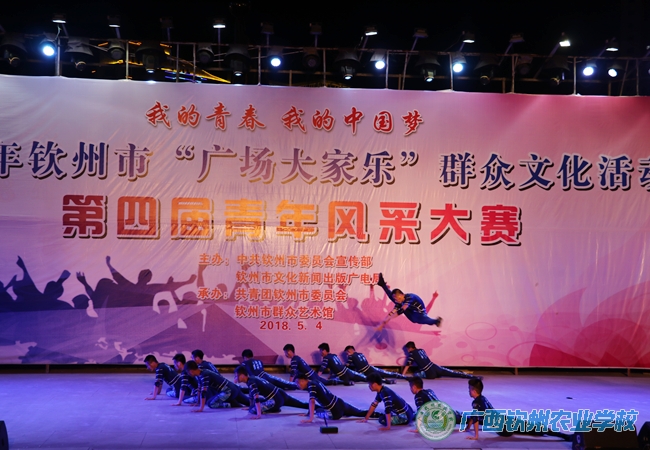 2018年5月4日晚,团委组织我校学生群舞《刀锋》到钦州湾广场参加2018年钦州市第四届青年风采大赛。参赛的同学们用阳钢果敢的形象,强劲有力的动作,生动展现了一群年经的战士们奋勇前行的身影,他们用手中利刃告诉人们钢铁是这样炼成的。最终,我们的节目赢得了评委和群众的一致好评,荣获二等奖(总分排名第二)。