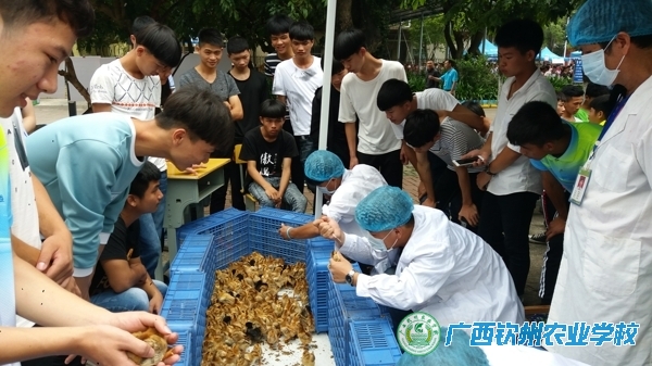 2018年5月11日上午9点半钟,随着一声:“现在我宣布:2018年钦州市校园科普活动启动!”2018年钦州市校园科普活动暨“春茂杯”广西钦州农业学校第16届学生技能竞赛拉开了帷幕,我校师生员工近3000人和来自钦州市钦南区、钦北区22所中学共2000多名中学生参加了启动仪式和体验活动。本次校园科普活动其中一个重头戏是科普参观体验,我校现场开放了科普基地的主要场所和52个技能竞赛及观摩体验项目,还有来自钦州市科协、钦州市气象局、钦州市地震局、钦南区科协、钦州市无人机协会等单位展出的科普宣传展板、科普资料及先进设备,每个项目都充分调动了大家的浓厚兴趣,吸引大家的眼球,特别是无人机模型、智慧农业、多肉植物、奇异花果、冰淇淋、土耳其烤肉、昆虫工艺品、蛋糕裱花、雏鸡接种、蔬菜嫁接、茶艺表演、微景观、原木手绘、手工作品和各种社团展演项目等吸引了更多的参观者驻足观赏和争先体验,参观者仿佛参加了一场科学与艺术高度融合的盛宴,美不胜收,其乐无穷。还有很多同学用手机微信关注防震减灾、人工降雨等各种科普常识,增长了科学知识,开阔了视野。