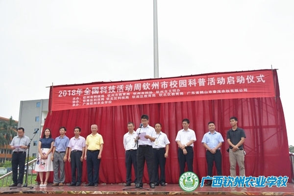 钦州市政府办副主任李健宣布2018年钦州市校园科普活动启动