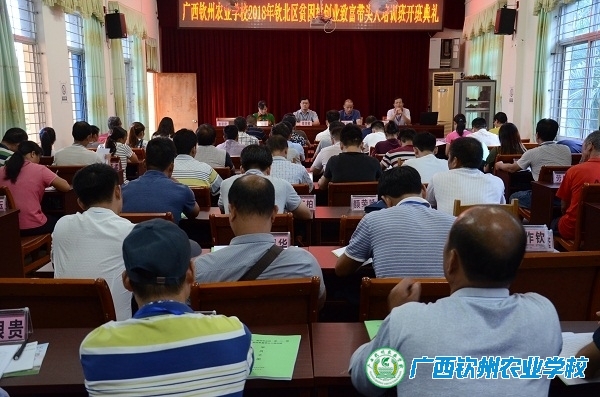 9月13日,我校承办的2018年钦北区贫困村创业致富带头人培训班开班典礼在第二会议举行,来自钦北区共65名学员参加了此次培训。学校覃效敏副校长、钦北区扶贫办党组书记黎培科、钦北区扶贫办信息服务中心赵文奎主任、学校办公室李从庆主任参加了开班典礼。