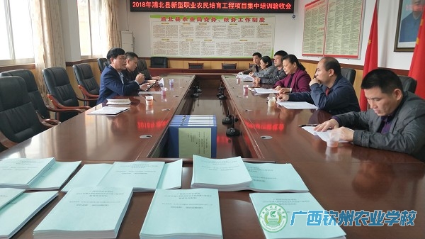 3月19日,学校覃效敏副校长、培训中心唐伟尤主任到浦北县农业农村局进行培训项目考核验收工作,浦北县新型职业农民培训工作验收组对广西钦州农业学校2018年承担的新型职业农民培训任务350人进行了检查验收。