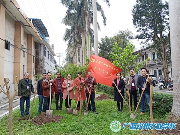 阳春三月万物苏,植树播绿正当时。为充分发挥党员先锋模范作用和团队合作精神,近日我校第三党支部结合学校工作实际,将植树活动与党员主题日相结合,组织支部党员开展“植绿树,悟党性”主题党日活动。活动中党员同志热情洋溢,干劲十足,配合默契,圆满完成植树工作,以实际行动为学校增绿添彩。