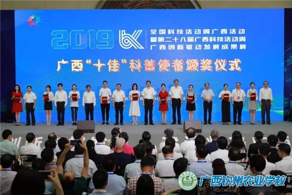 2019年5月19日,由自治区人民政府主办,自治区科技厅、自治区科技创新发展办公室承办的2019年全国科技活动周广西活动暨第二十八届广西科技活动周·广西创新驱动发展成果展(两周一展)启动仪式在南宁国际会展中心举行。我校李彬彬老师参加了启动仪式,并上台接受自治区领导授予的“广西十佳科普使者”荣誉证书。