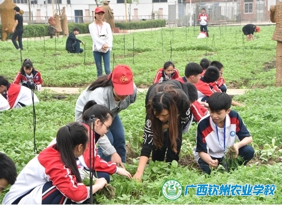 同时为了配合好钦州市第七中学的师生到我校开展劳动教育活动,青年志愿者协会每周三下午安排10名志愿者进行劳动技能指导。炎炎烈日,校园内都能看到青年志愿者在现代农业示范园、花田、智慧农业大棚等实训场地忙碌的身影。