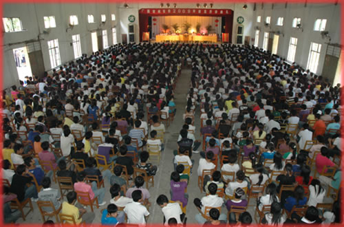学校党委书记、校长刘波在典礼上讲话学生科郑修营科长主持会议新生代表廖民茵同学发言08级学生代表陈雪梅同学发言班主任代表杨文雄老师发言开学典礼现场