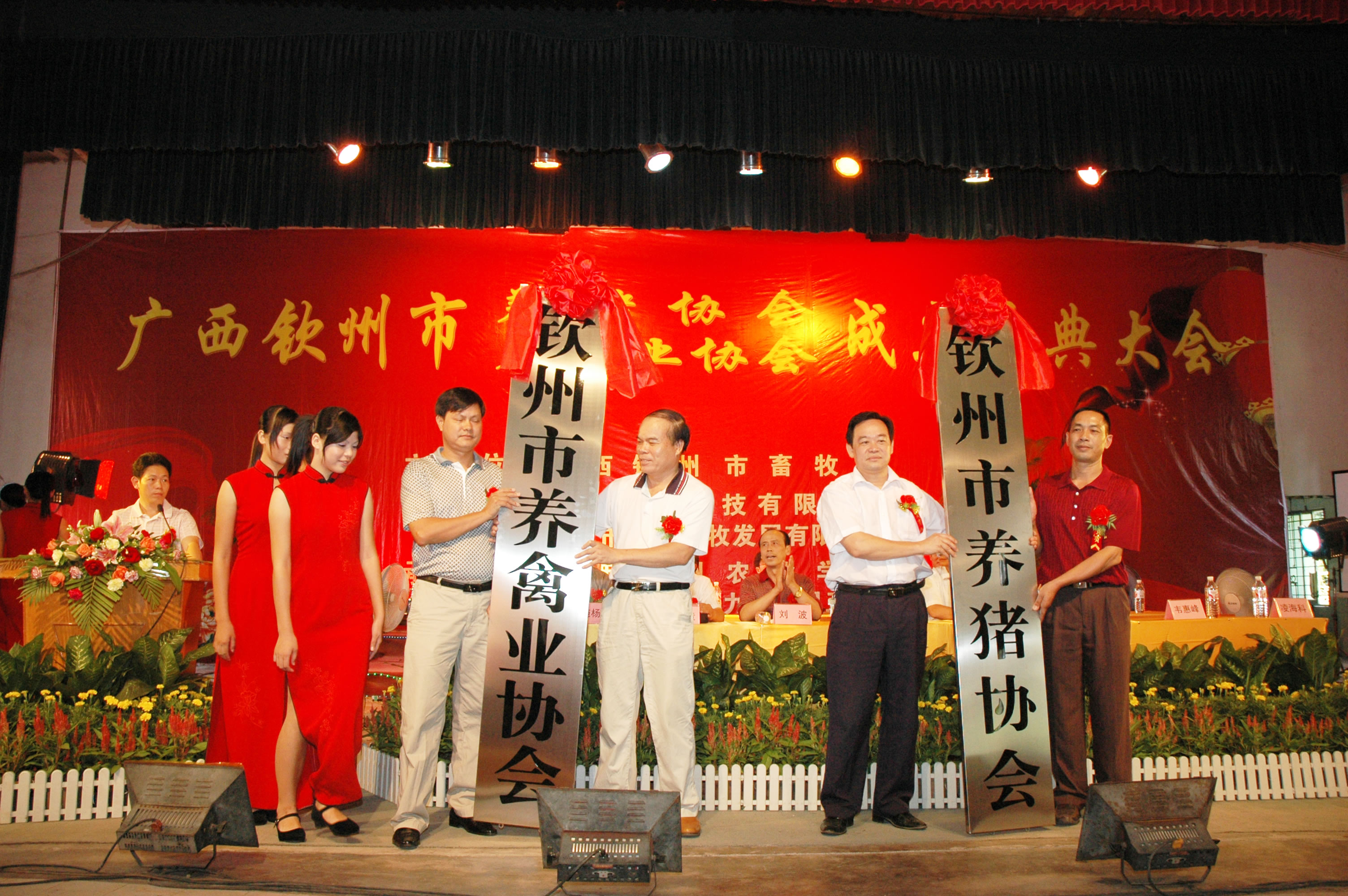 九时许,广西钦州市养猪协会、养禽业协会成立大会在该校的在大礼堂开幕。出席庆典仪式的有钦州市水产畜牧兽医局局长林志勇、广西区畜牧兽医学会养猪学分会理事长何若钢、广西大学教授陆芹章、钦州市民政局副局长施扬新、广西钦州农业学校校长刘波和灵山县、浦北县、钦南区、钦北区水产畜牧兽医局的领导等领导专家、协会会员代表、专家和老板等300多人参加成立大会。