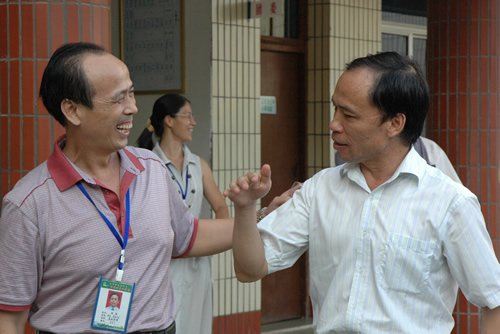 学校领导对慰问团的到来喜笑颜开
