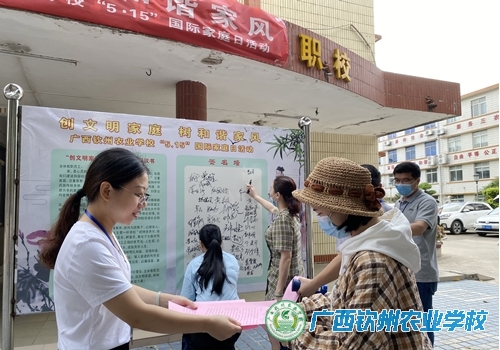 5月15日是国际家庭日,为推进家庭文明建设,弘扬社会主义核心价值观和中华民族传统美德,在全校进一步形成爱国爱家、相亲相爱、向上向善、共建共享的家庭文明新风尚。2020年5月15日上午,妇委会在学校办公楼前开展国际家庭日活动,通过向全体教职员工发放“创文明家庭 树和谐家风”倡议书,在倡议书海报上签名的形式,引导教职员工们注重家庭、注重家教、注重家风,从自身做起,从家庭做起,从现在做起,以好家风促党风政风、带社风民风。