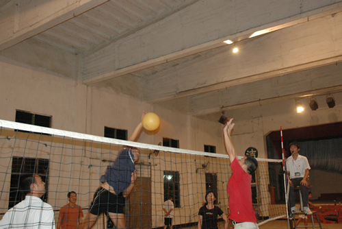 看我腾空吊球“反扣杀”观众看球更是乐功防合一集聚目标点学校工会陆武昌主席主持颁奖仪式工会体育委员陆宏松宣布比赛结果刘波校长为A组冠、亚、季军颁奖吴炳科副校长为B组冠、亚、季军颁发奖金工会陈明强副主席为B组冠、亚、季军颁发奖品合影留念