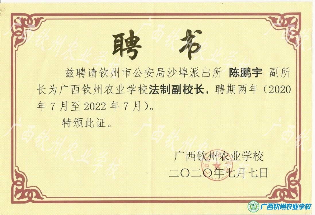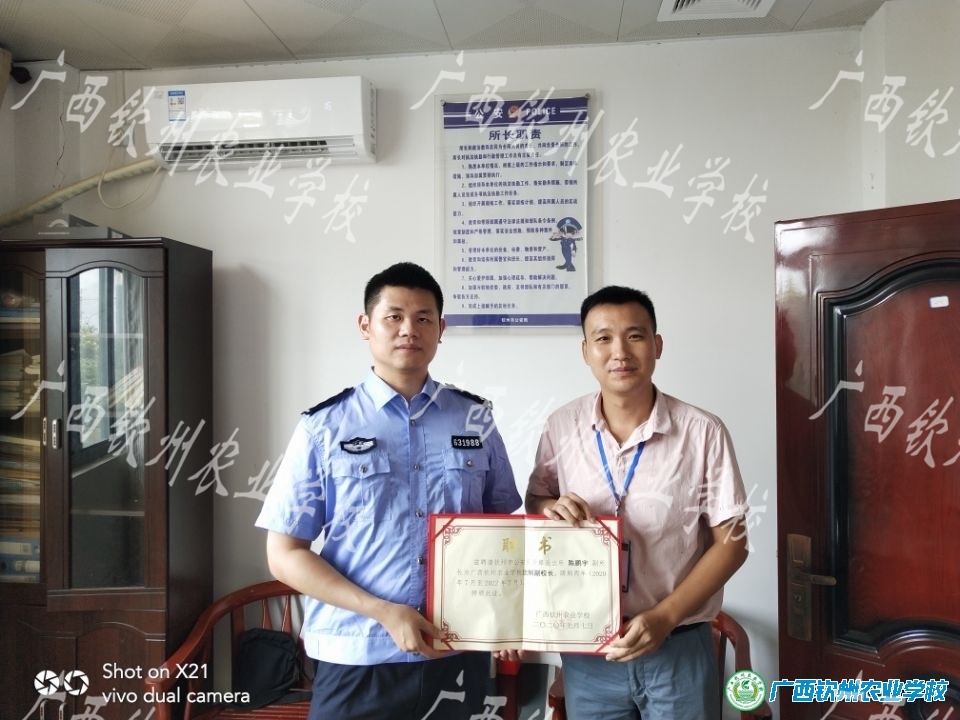 为了进一步加强警校合作,为“平安校园”提供强有力的保障,并希望能在钦州市公安局沙埠派出所的帮助下,不断加强我校的法制教育工作。2020年7月8日,保卫科吴明科长、李科海副科长、魏存昊副科长一行3人到钦州市公安局沙埠派出所洽谈警校合作相关事宜,沙埠派出所徐敬展所长、陈鹏宇副所长出席会议。