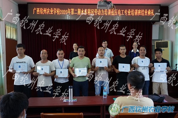 2020年7月13日上午,随着学员带着满意的答卷从市安全生产考试中心回来,学校第二期水库移民就业技能低压电工培训班圆满完成了各项工作。南宁市良庆区水库和扶贫易地安置中心黄丞珏,学校分管培训工作的覃效敏副校长等领导同志出席了结业典礼。本次共有48名学员参加为期半个月的培训。