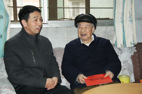 陈书记一行首先向校全体职工致以节日的问候,并送上节日慰问金,祝我校全体教职工节日快乐、万事如意、合家幸福。随后,陈书记在学校工会陆武昌主席等同志的陪同下,看望了我校老劳模、老校长吴恒舜同志,并送上慰问金。