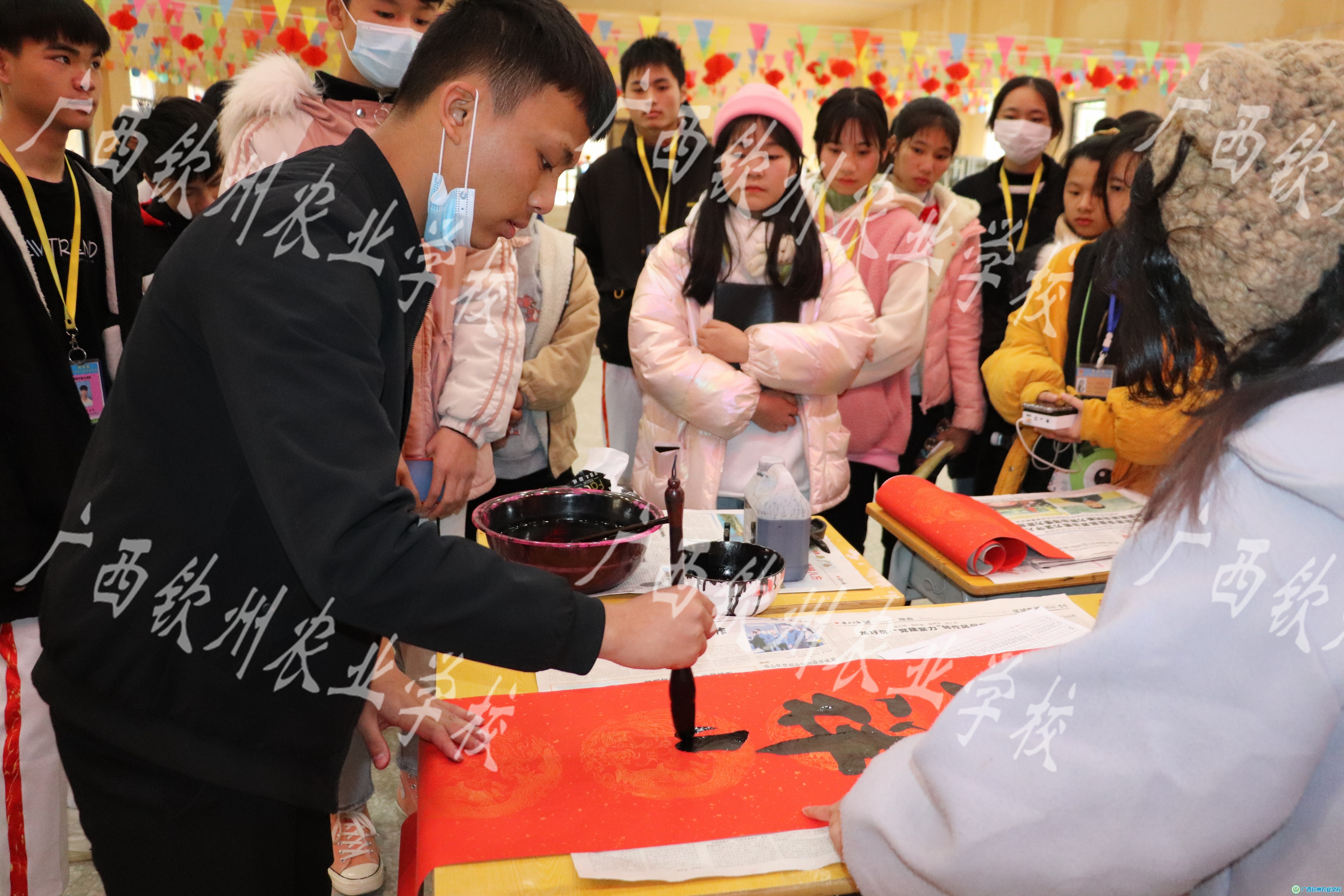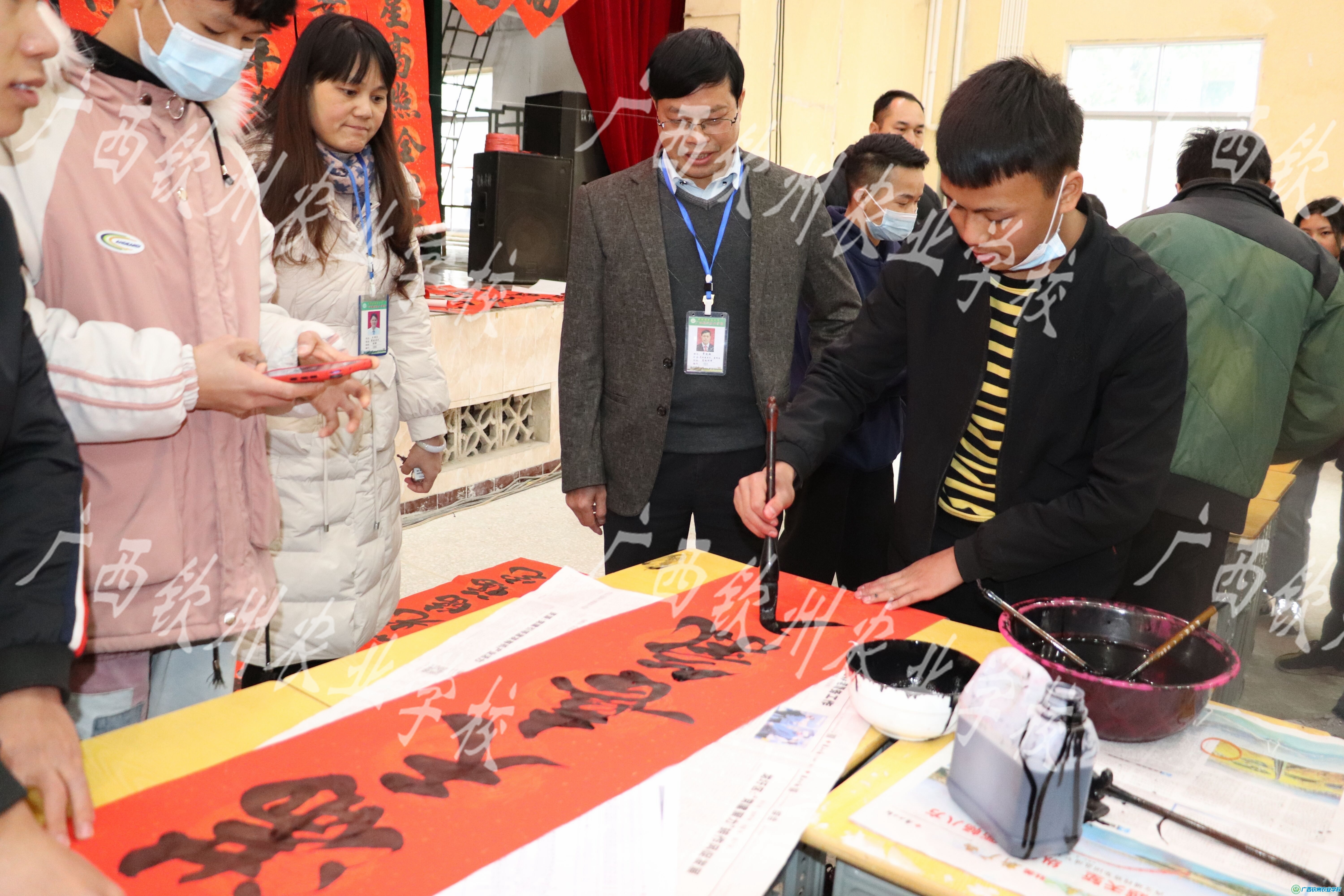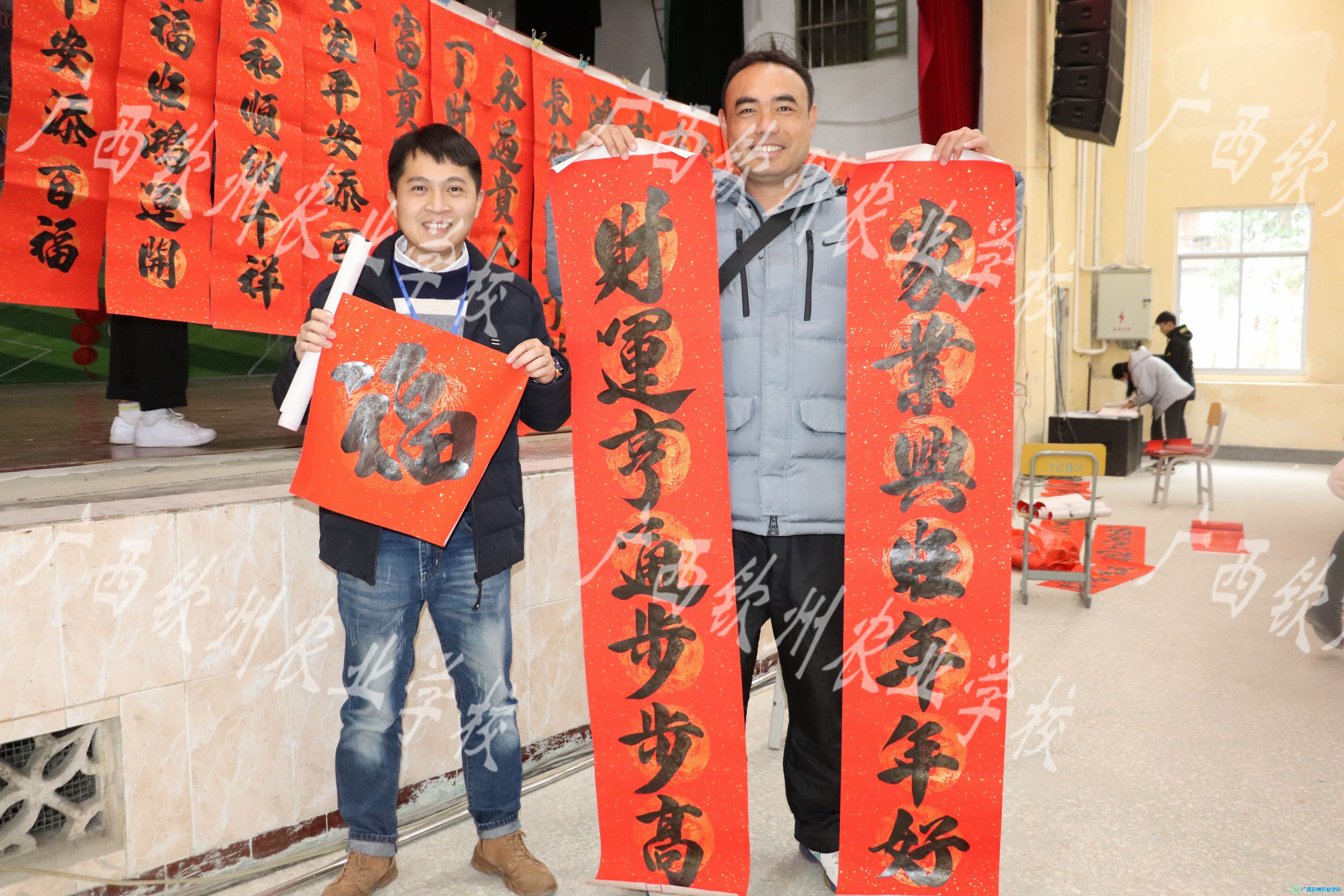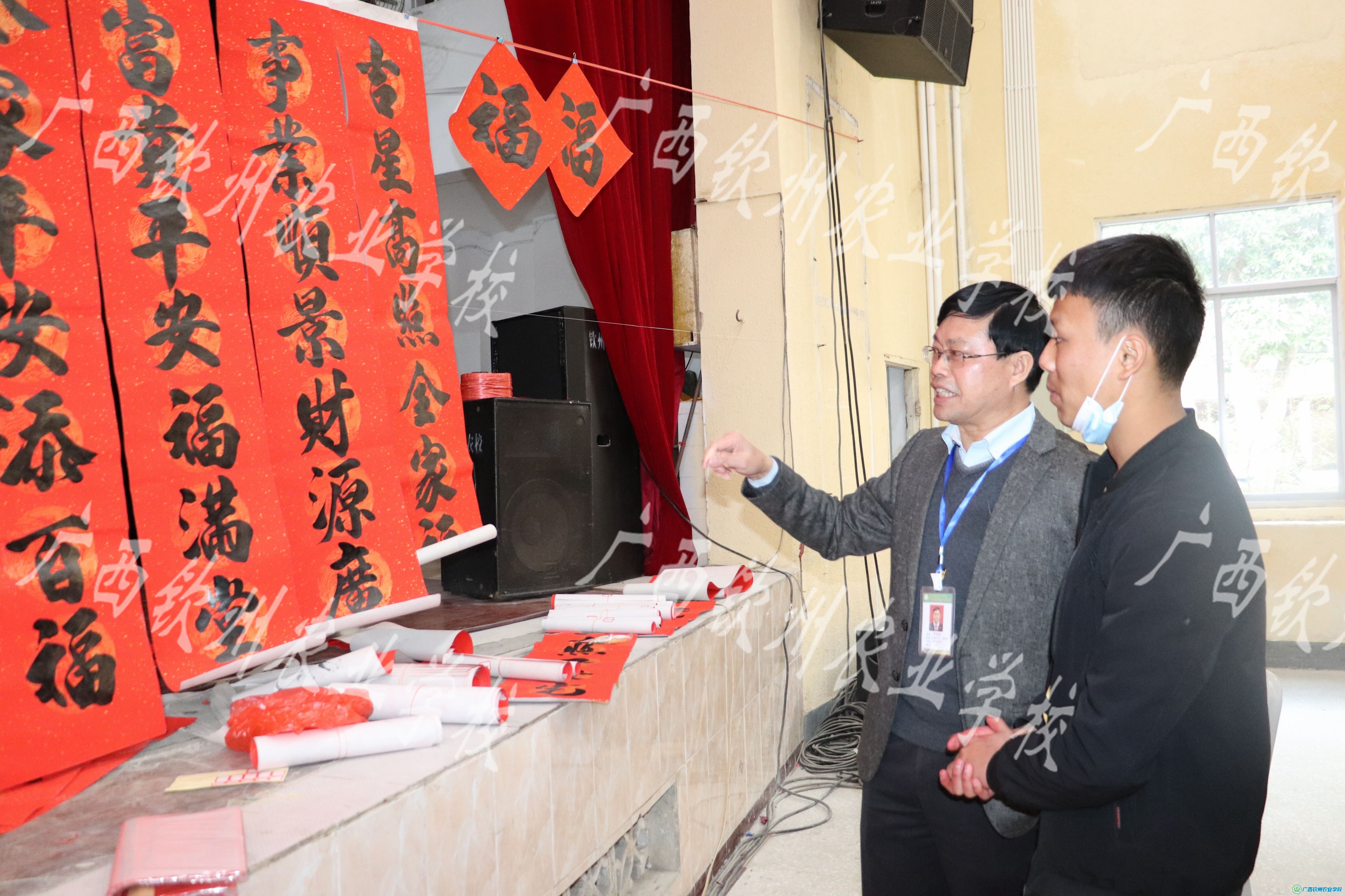 为弘扬中华优秀传统文化,展现学生社团成员精神面貌及社团活动成果,丰富师生校园文化生活,2021年1月11日下午,校团委组织学生书法社在大礼堂开展为教职工写春联送祝福活动。学校领导覃效敏副校长亲临现场指导。