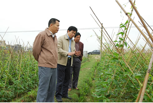 肖子盈局长陪同陆武昌主席参观考察合浦县农业局的豆角高产栽培示范基地