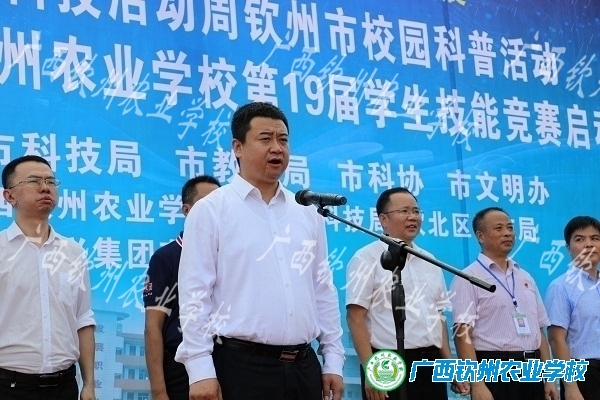 为庆祝中国共产党成立100周年,推动科技创新成果和科学普及活动惠及于民,同时展示我校办学成果。5月21日上午,2021年全国科技活动周钦州市校园科普活动暨“恒兴杯”广西钦州农业学校第19届学生技能竞赛启动仪式在我校隆重举行。钦州市委常委、副市长姚永福,钦州市科技局党组成员、二级调研员施扬新,自治区农业农村厅科教处副处长凌飞展、钦州市科协副主席周路、市科普联席会议成员单位的领导、广东省恒兴集团有限公司领导出席启动仪式。我校党委书记、校长伍国樑致欢迎词。我校全体师生参加启动仪式。本次活动邀请了钦州市部分中学师生1600多人前来观摩学习。启动仪式由我校副校长陈明强主持。