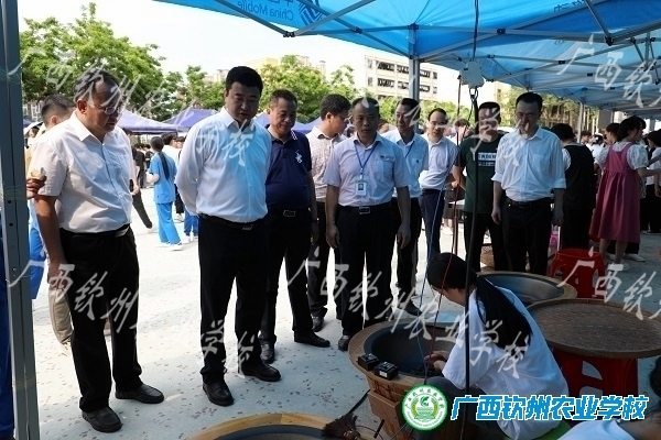 出席启动仪式的钦州市、农业农村厅领导在学校领导陪同下观摩技能比赛