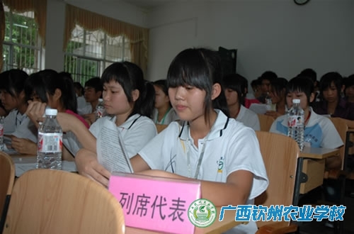 学生代表大会现场 左1(李红调研员)左2(伍国樑副校长)左3(覃一静副校长) 伍国樑副校长在会上作了讲话 学生科郑修营科长作候选人情况介绍 学生会朱翠婷同学主持会议 学生会主席古中方作第二十四届学生会工作报告 参与竞选演讲的部分候选人