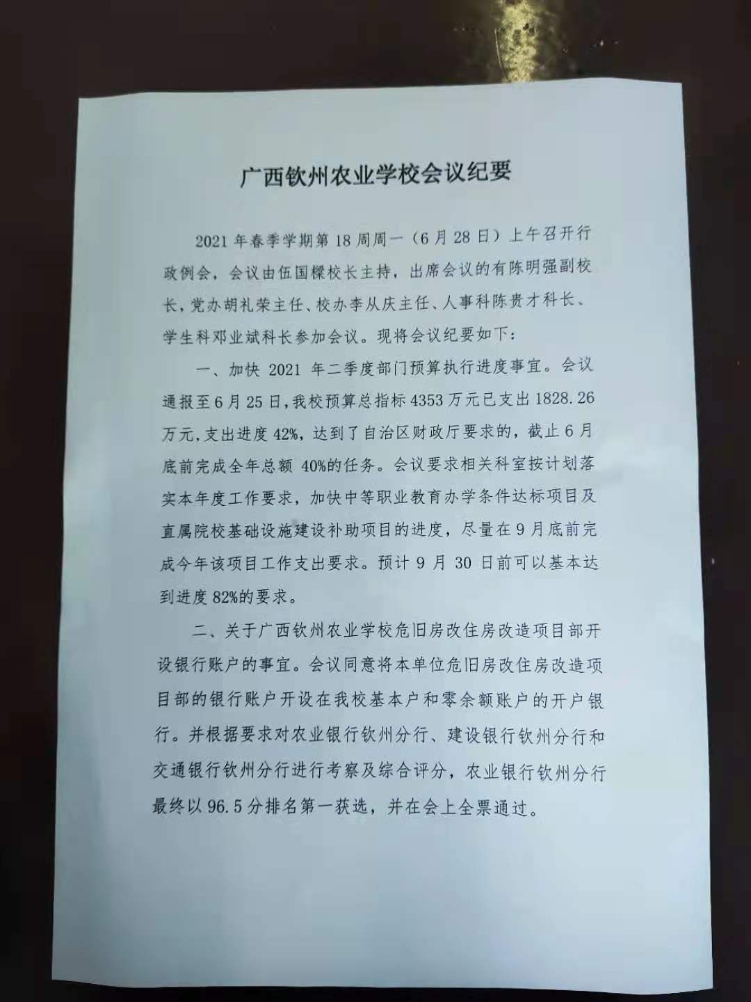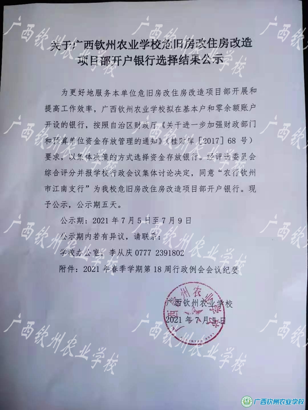 关于广西钦州农业学校危旧房改住房改造项目部开户银行选择结果公示