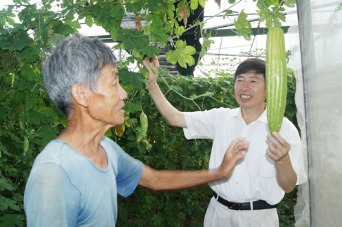 白总农艺师在学校领导的陪同下,深入到我校教学田、现代农业示范园了解作物生长和优良品种的种植情况。在现代农业示范园,白先进总农艺师与我校农场技术人员进行亲切交谈,详细了解作物的田间管理,尤其是作物在汛期的管理,指出当前最重要的是要认真抓好防汛工作,在确保师生生命财产安全的同时,要想方设法减少天气灾害对农作物的危害,以确保有个好的收成。白总农艺师走进温室大棚,察看作物生长情况,看着长势良好的甜瓜、苦瓜和“矮红一号”良种木瓜苗,白总农艺师十分高兴,他向我校农艺师、“矮红一号”良种木瓜选育者蔡恒徽老师详细询问了有关情况,白总对蔡老师长期以来辛勤耕耘,不断研究、选育优良瓜果品种的精神表示赞赏,并指出,农校要发挥好自身优势,争取推出更多的优良品种,为现代农业作出应有贡献。