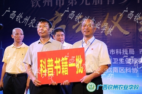 钦州市科协黄岳联书记介绍了2021年全国科普日钦州活动暨八桂科普大行动的主题、意义、活动时间以及活动内容的安排。随后,黄岳联书记向我校赠送一批科普书籍,学校伍国樑校长代表学校受领书籍。市委宣传部副部长、新闻出版局局长黄鼎军宣布活动启动。仪式结束后,主办单位领导在伍国樑校长陪同下,巡视校园科普活动。