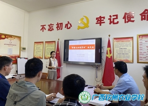 党课由党支部书记农晓琼主讲,她以《萍塘儿女闹革命》为题,讲述钦州市灵山县新圩镇萍塘村英雄儿女的抗战故事、震撼钦廉的“白木事件”,为支部全体党员上了一堂精彩的党课。萍塘儿女保家卫国、救亡图存的家国情怀和大无畏的革命精神,深深感染着每一位党员。