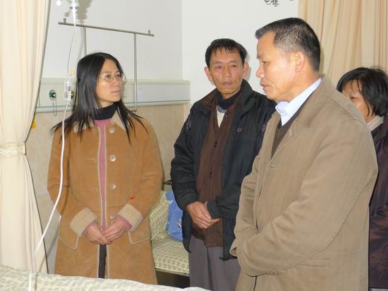 覃一静副校长(左一)、陆武昌主席(右前一)到医院
