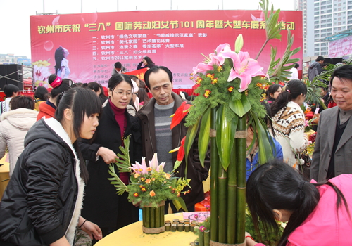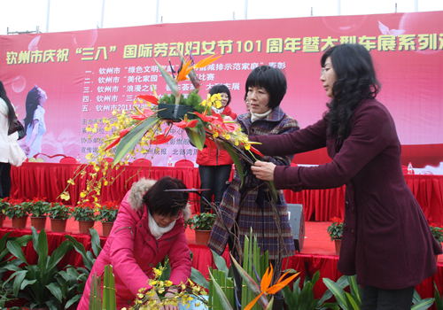 2011年3月4日上午,为庆祝“三·八”国际劳动妇女节101周年,钦州市妇联、钦州日报社联合主办钦州市美化家园“艺术插花”比赛活动,比赛在钦州湾广场拉开序幕。