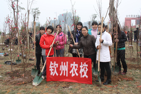 2011年3月4日下午,钦州市妇联在市行政中心举行钦州市“巾帼花园”认捐认种植树活动,倡导广大妇女积极投身“创三城 迎区运 绿化美化钦州”主题活动。我校妇委会组织9名师生代表学校参与活动,参与活动的师生代表是:黄小海、黄冰、黄朝华、符菊华、何本连、王白玉、王春霞老师、计算机093班宁秋玲、杨莹莹,学校对“巾帼花园”认捐认种植树活动捐资1000.00元。
