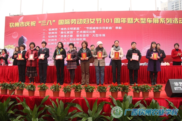 为庆祝纪念“三八”国际劳动妇女节,表彰先进,树立榜样,进一步推动钦州“园林城 卫生城 文明城”的创建,钦州市妇联表彰2010年“文明交通玫瑰行动”和“绿化美化”钦州主题活动先进单位和个人,我校妇委会榜上有名,荣获3项荣誉。