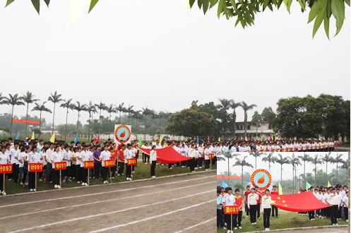 运动员在班主任老师的带领下入场