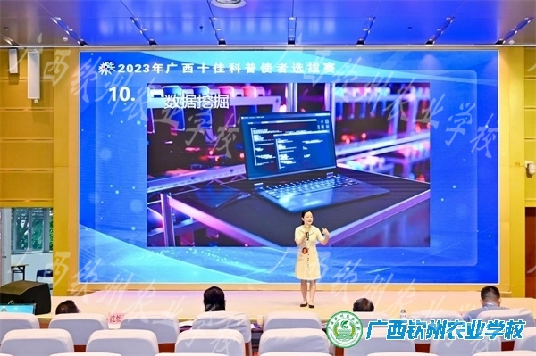 4月27日,由自治区科技厅主办的2023年广西十佳科普使者选拔赛决赛在广西科技馆学术报告厅精彩落幕。我校蒙镇淼老师摘得桂冠,获得“2023年广西十佳科普使者选拔赛”一等奖及“十佳科普使者”荣誉,刘莹莹和苏艳林老师荣获“2023年广西十佳科普使者选拔赛”优秀奖。蒙镇淼老师作为获得“2023年广西壮族自治区十佳科普使者”的选手,将在2023年全国科技活动周广西活动暨第三十二届广西科技活动周启动仪式主会场上接受自治区领导颁奖,同时作为区赛冠军将会被推荐参加2023年全国科普讲解大赛。