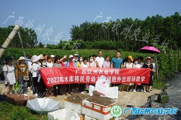 结合当地农时和学校实际,本期培训班采取送教下乡模式开展,学校领导高度重视,安排了知识理论扎实、实践经验丰富的教师进行授课。开班第一课主管部门对水库移民政策解读让学员进一步了解了国家对移民的相关政策;新植蔗高产高糖栽培技术,甘蔗和西瓜病虫害识别与防治(田间实训),宿根蔗管理技术,甘蔗病、虫、草综合防治技术(田间实训)等专业课程让学员初步掌握了相关的理论知识和实践技能;“学习贯彻党的二十大 扶志扶思感谢党恩”课程教学旨在增强移民朋友的感恩意识。培训期间,为开阔眼界,拓宽移民增收渠道,还组织学员到广西钦州钦赐农业科技有限公司开展实地学习百香果种植和管理技术,切实提高培训质量与效果。