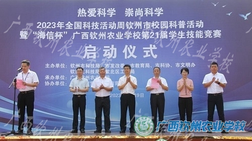 2023年5月19日上午,由钦州市科技局、钦州市发改委、钦州市教育等7个部门主办,我校承办的2023年全国科技活动周钦州市校园科普活动暨“海信杯”广西钦州农业学校第21届学生技能竞赛活动开幕式顺利在我校举办。