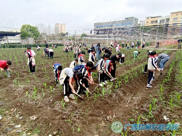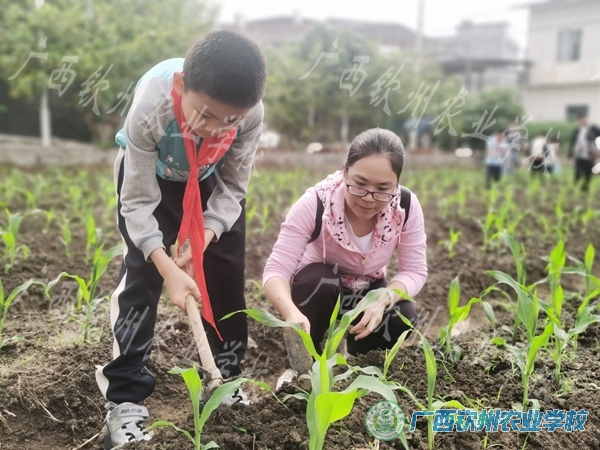 3月18日,钦州市实验小学四(5)班到我校开展农耕研学实践活动。春回大地,万物复苏,又是一年芳草绿,玉米地里的杂草都探出了头,我校教师根据来校同学们的年龄特点,精心选择了适合同学们的劳动——除草。
