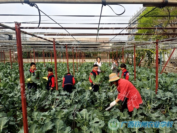 3月11日,钦州市人和小学来我校进行劳动研学。正值小番茄开花需要修剪枝叶之时,梁秀芳老师给同学们安排了修剪枝叶的劳动研学活动。