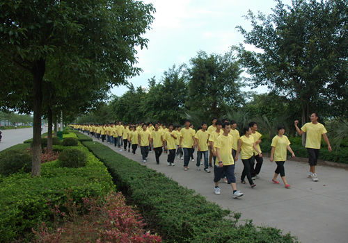 我校师生发扬不怕苦、不怕累的精神步行前往会场