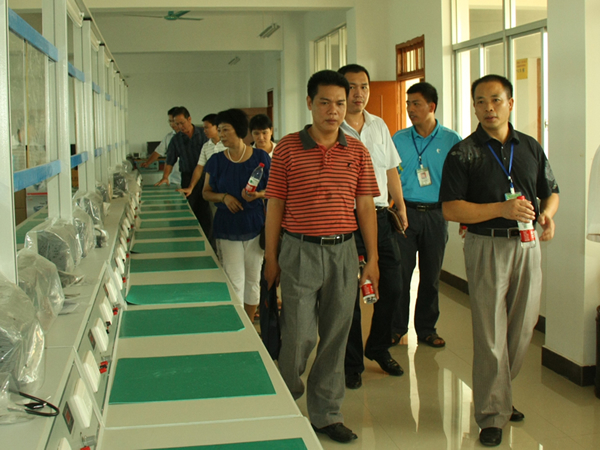 伍国樑副校长陪同专家组考察一体化生产实训现场