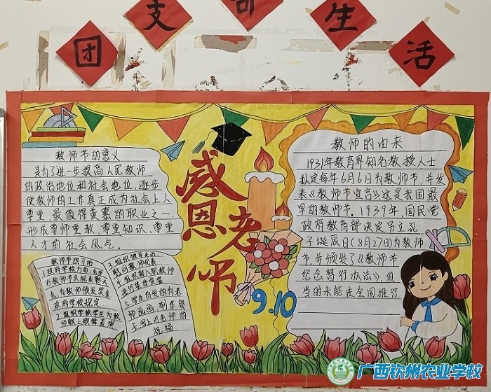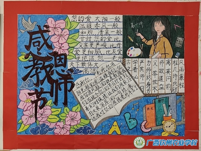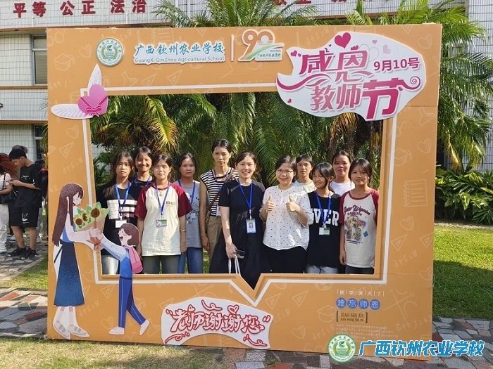 在教室中,各班学生绘制了教师节主题的团支部生活板报,团委在学校各处设置了合影相框,同学们自发邀请老师在相框前合影,用图像铭刻和敬爱的老师共同的回忆。