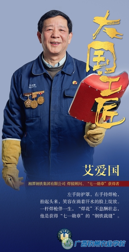 艾爱国: 左手防护罩,右手持焊枪,抬起头来,笑容在淌着汗水的脸上绽放。一杆焊枪伴一生,“焊花”不息酬壮志,他是获得“七一勋章”的“钢铁裁缝”。
