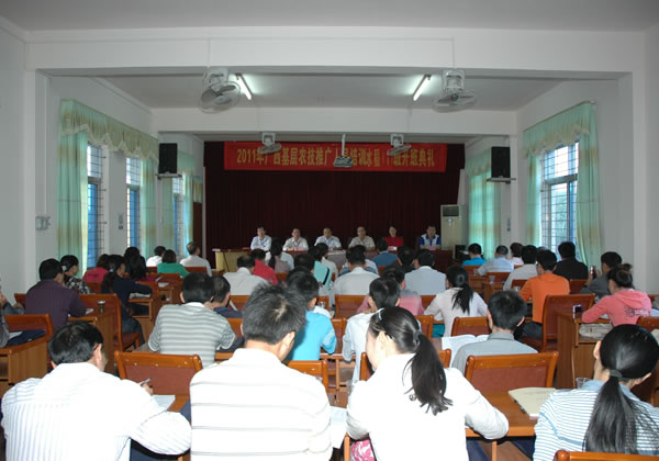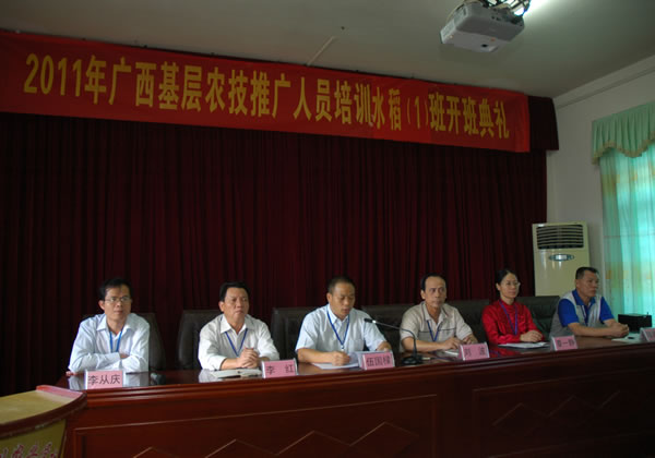 为了提高基层农技推广人员业务素质和技能水平,增强科技对农业农村经济发展的支撑能力,促进现代农业发展和社会主义新农村建设,根据自治区农业厅办公室关于做好基层农技推广体系改革与建设示范县基层农技人员培训工作的通知精神。按照学校的培训方案,10月24日,由我校承办的广西基层农技推广人员水稻培训班(1班)在学校第二会议室举行简短而隆重的开班典礼。