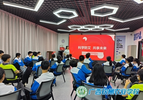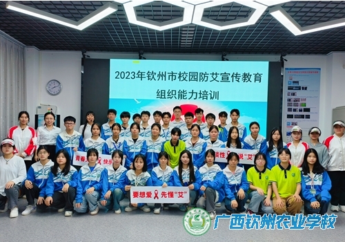 2023年11月29日下午和晚自习,我校妇委会与钦州市疾病预防控制中心、钦州市清馨社会工作服务中心联合在我校汽车模拟仿真实训室开展钦州市校园防艾宣传教育组织能力培训,我校“青春红丝带”宣传队近100名队员参加了培训。