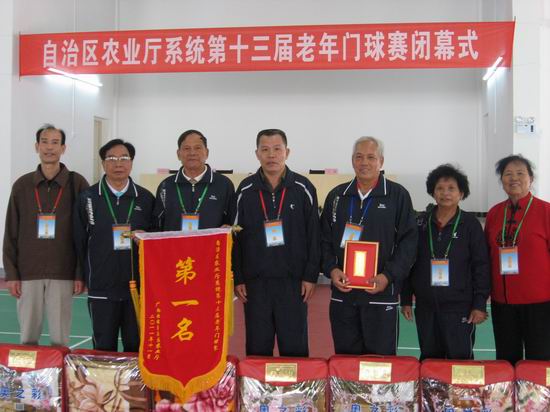 自治区农业厅系统第十三届老年门球赛于11月7-10日在广西玉林农业学校举行,共有10支球队参加比赛,我校派出了以工会陆武昌主席为领队的精干球队,我校代表队在比赛中发扬团结拼搏精神,稳扎稳打,步步为营,以7胜2负的好成绩夺得第一名。
