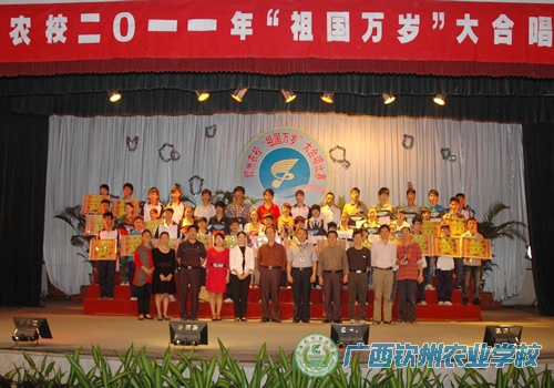 学校领导、评委老师和领奖代表合影