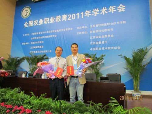 2011年11月12日至15日,由中国职业教育学会农村与农业职业教育专业委员会、全国农业职业技术教育研究会联合主办的全国农业职业教育2011年学术年会在江苏畜牧兽医职业技术学院召开,本次会议除了围绕“贯彻《国家中长期教育改革和发展规纲要》,深化改革,推动农业职业教育协调发展”进行了深入探讨和研究外,还对荣获第二届全国农业职业教育教学名师奖的80位教师(高职57名,中职23名)给予了表彰,我校马军、王明总两位老师获此殊荣。